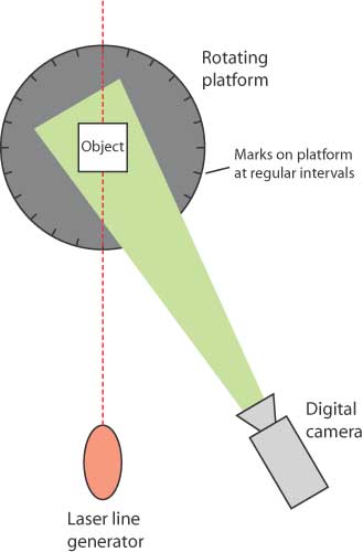 the set up you see here, you could scan an object from around